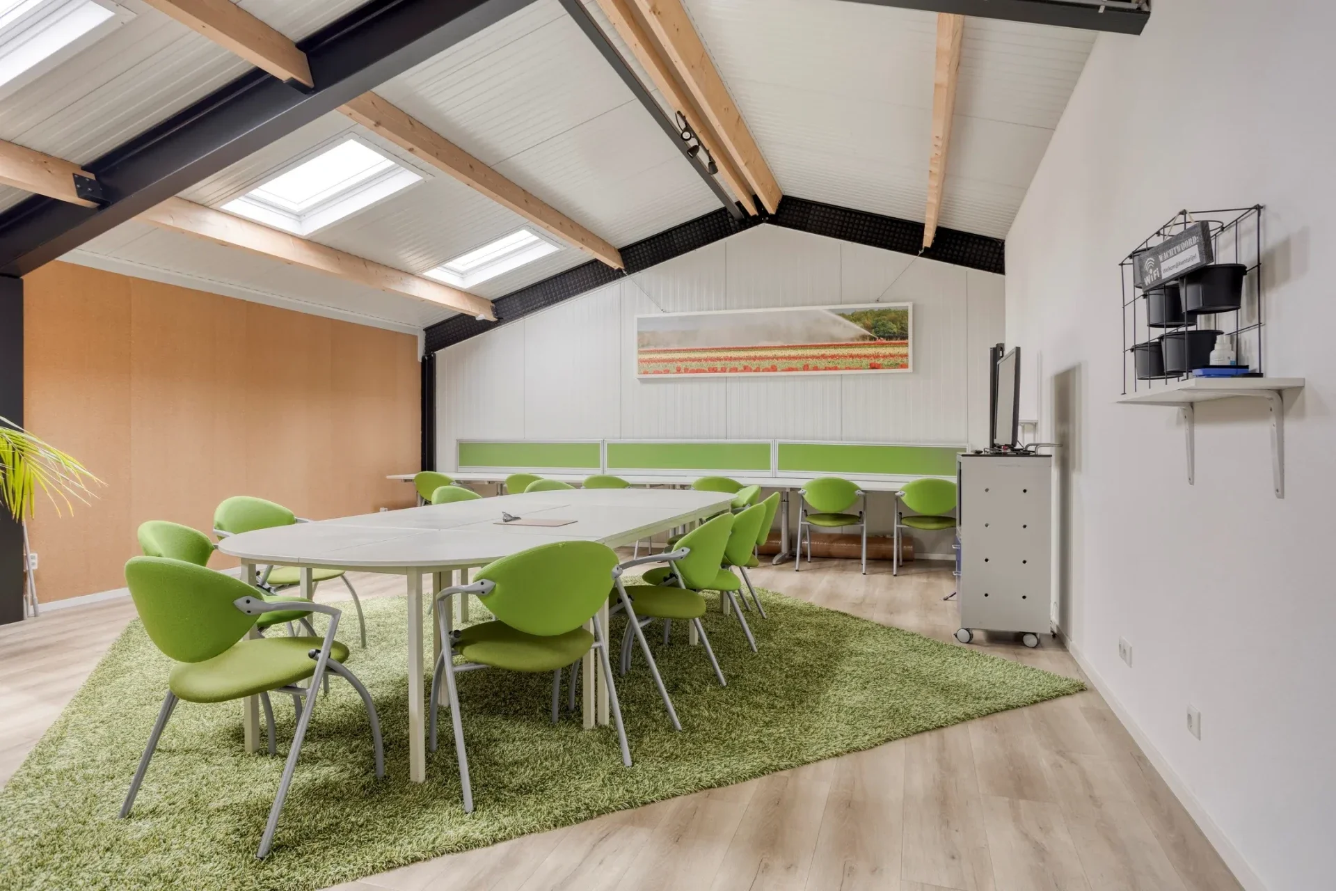 Vergaderruimte: voorzien van een digibord en alle moderne faciliteiten voor presentaties, trainingen of zakelijke meetings.